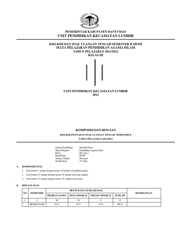 Kisi kisi soal pai sd kelas 6 semester 1kisi kisi soal pas sd semester 1 kelas 1 6.